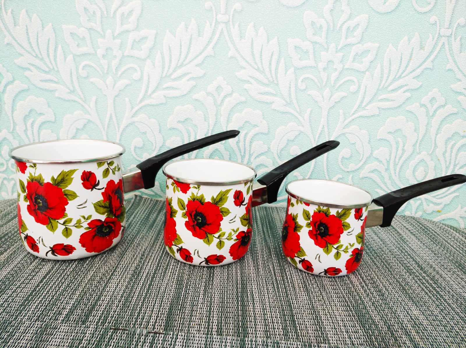 Такой набор ковшей изготовлен из металла высокого качества, покрытого эмалью. Такие кофеварки прочные и долговечные. Легко очищается даже в прохладной воде. Имеет современный дизайн и яркий цветочный принт. У такого хозяйственного ковша удобная ручка. В нем можно не только варить кофе, но и подогревать воду, молоко и другое. Набор станет отличным многофункциональным подарком для каждой хозяйки и на любой кухне кафе или ресторана.