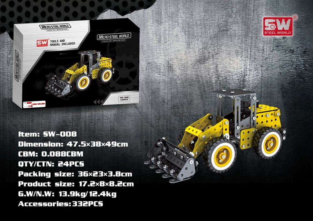 Конструктор SW-008 металл, трактор, инструм, 332дет, в коробке, Материал - метал + пластмаса, Тип упаковки - коробка.