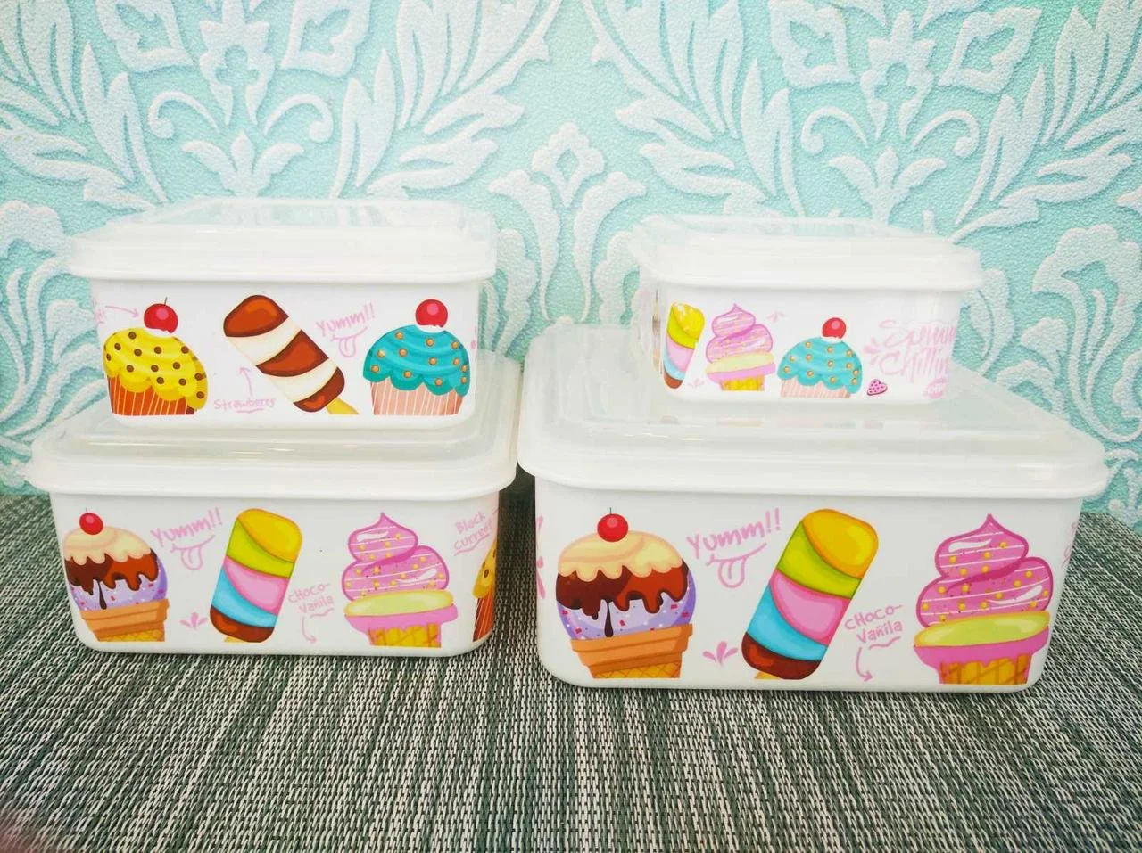 в набор входят 4 контейнера-судочка с крышками разного размера