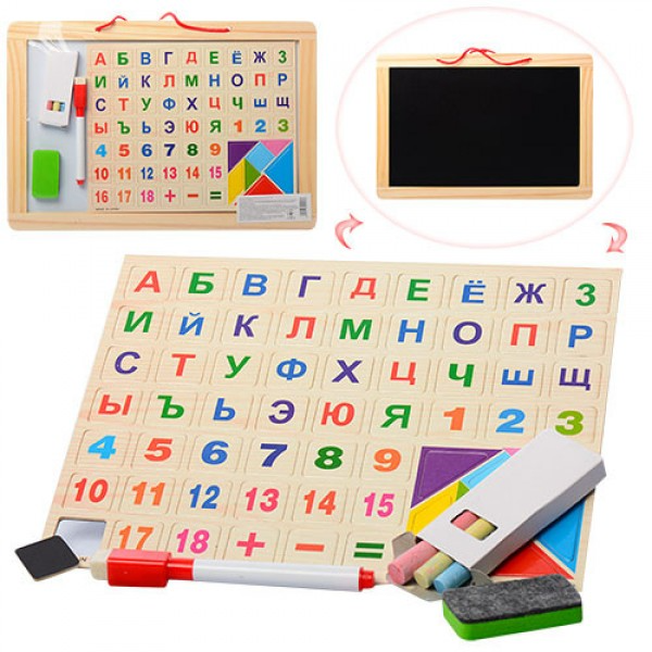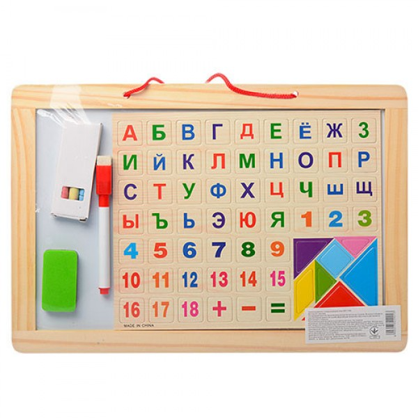 Магнитная доска для рисования - прекрасно подойдет для занятий, развития и обучения, игр, и просто не заменима в домашнем обиходе. Доска двухсторонняя с металлизированной основой (для маркера и мела), на которой прекрасно держатся любые магниты, и можно писать водным маркером. В комплекте: доска двухсторонняя, маркер, мел, двусторонняя мочалка для вытирания, набор букв и цифр Магнитная доска для рисования может послужить местом, где вся большая семья сможет оставлять друг другу записки, прикрепляя их магнитами