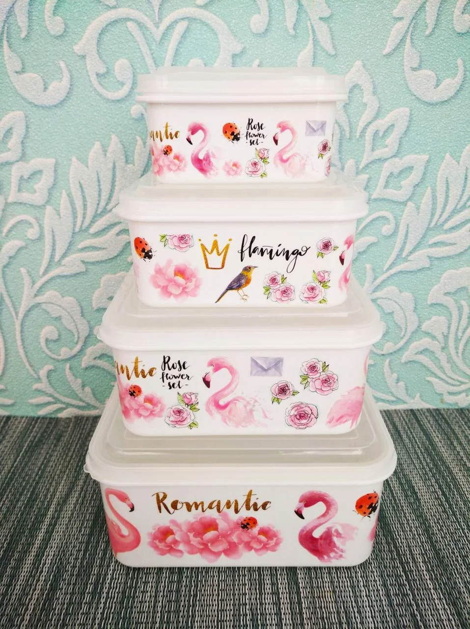В набор входят 4 контейнера-судочка с крышками разного размера