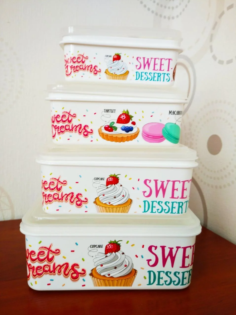 в набор входят 4 контейнера-судочка с крышками разного размера