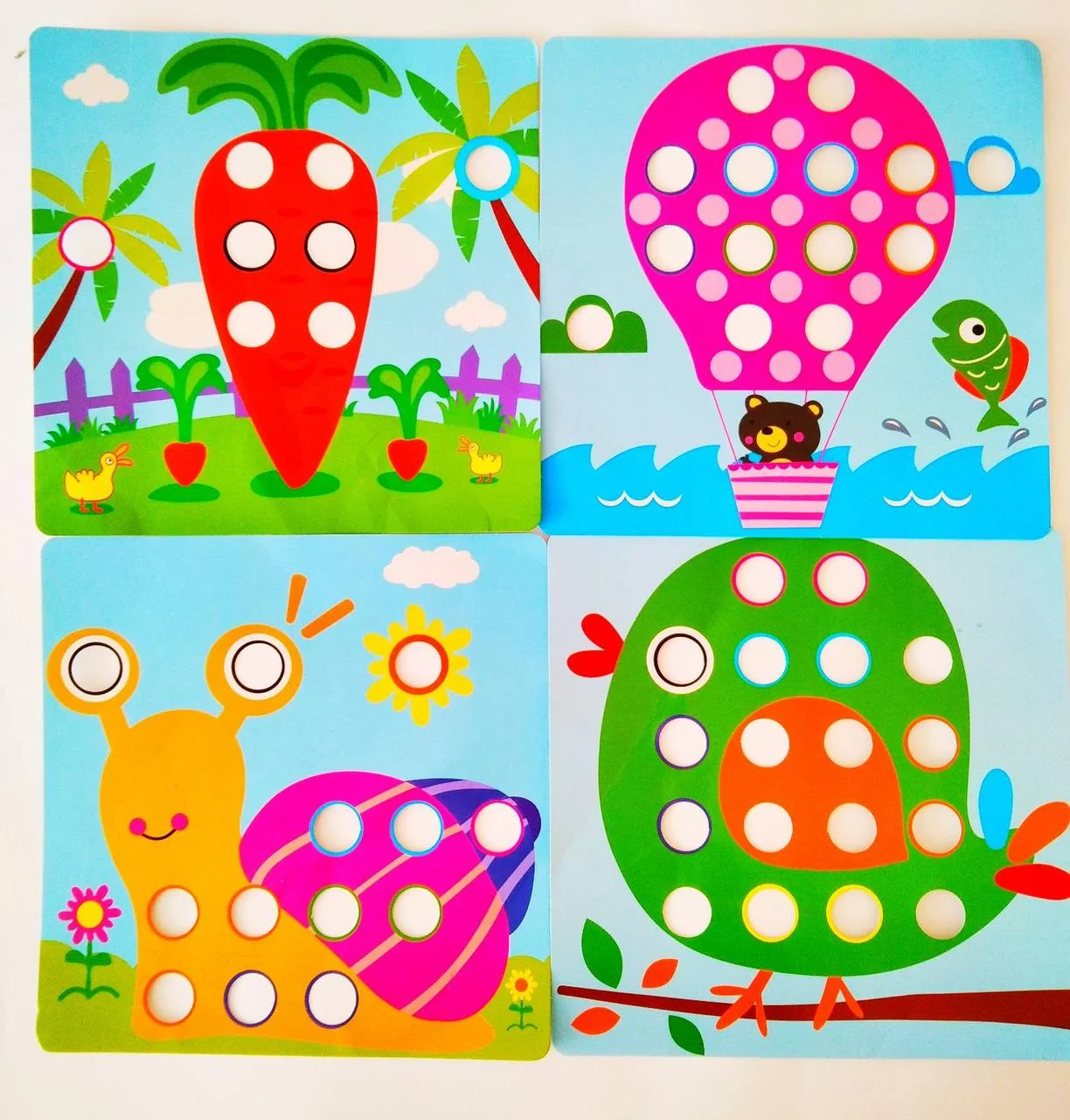Задача ребенка состоит в собирание картинки по цветам, с помощью разноцветных кнопок.
