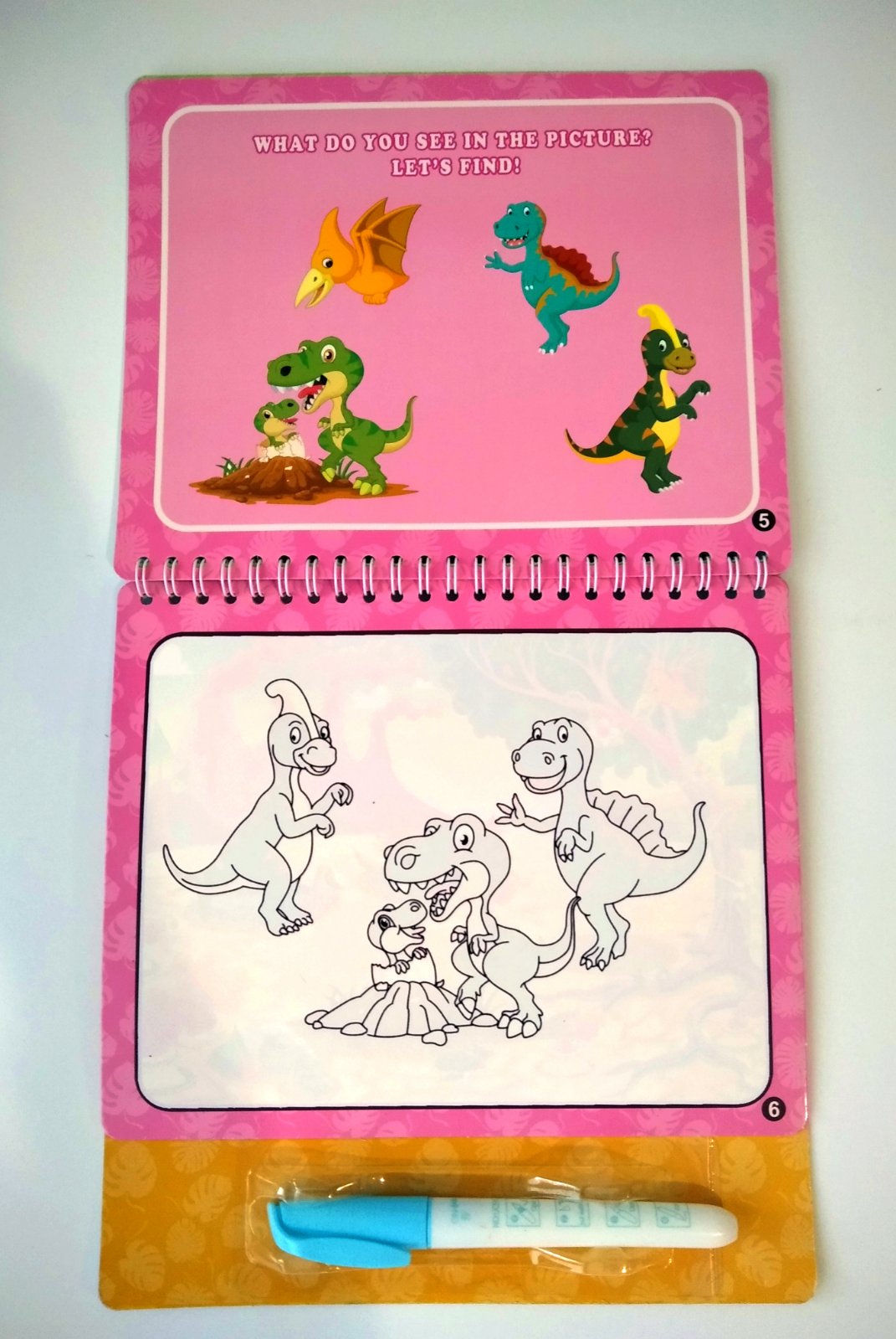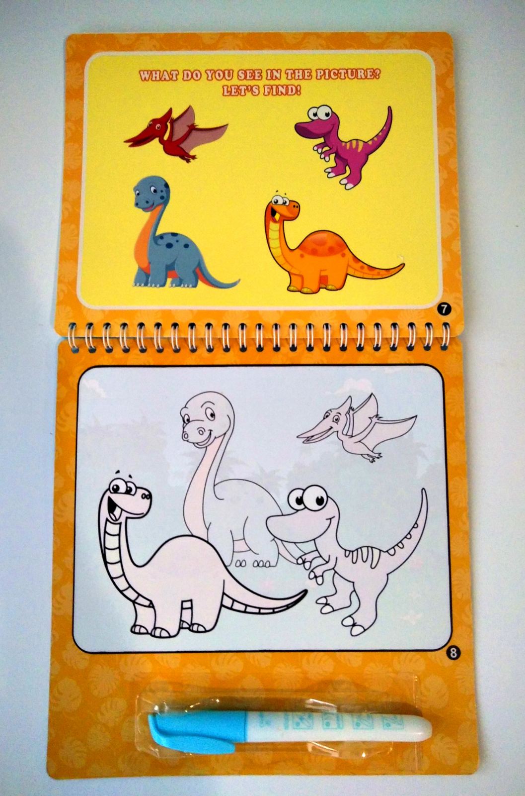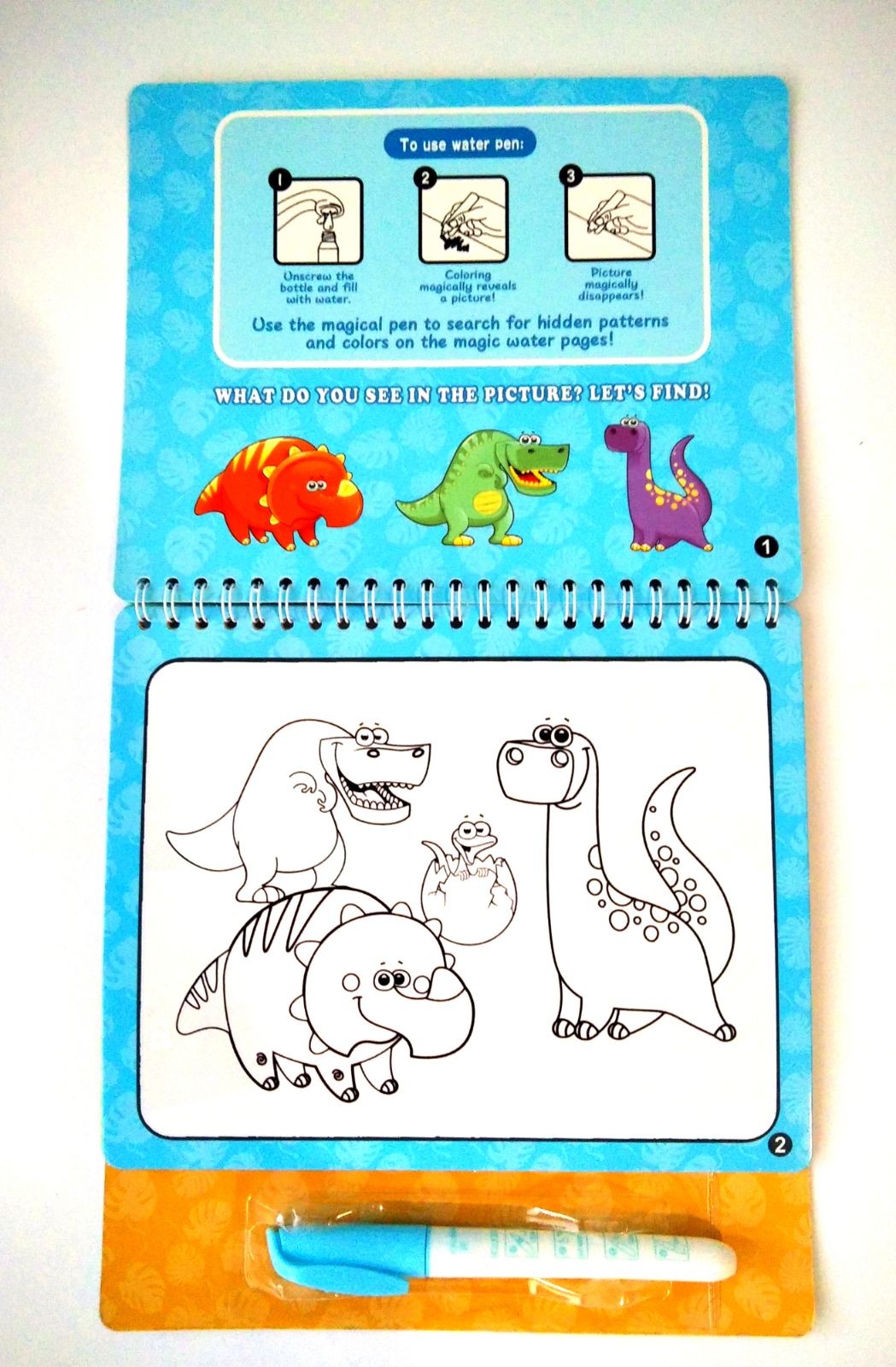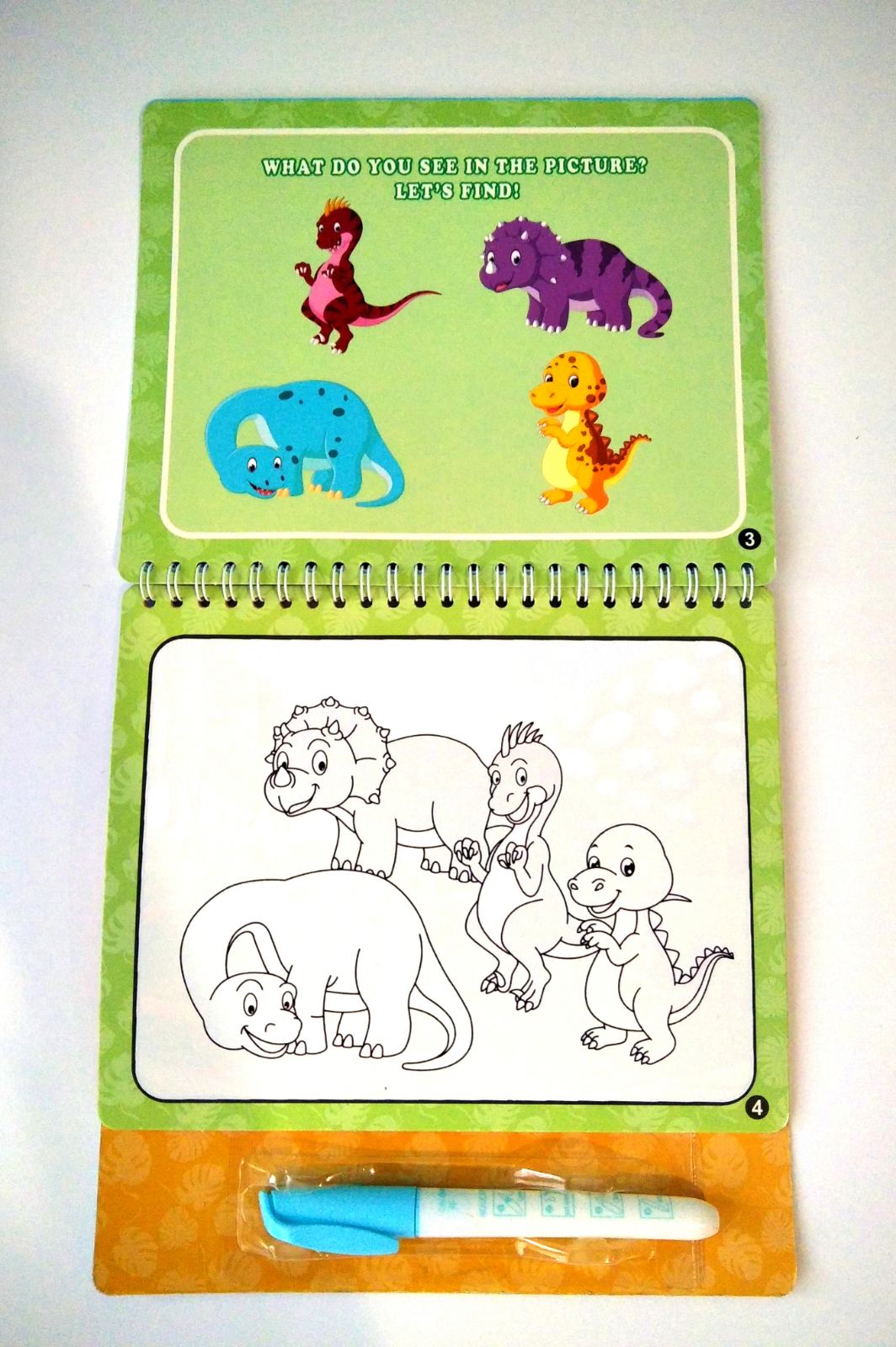 В комплект входит непосредственно водная раскраска и специальный маркер, в который необходимо заливать воду. Когда ребенок начнет раскрашивать черно-белые картинки — будут проявляться цветные изображения. Процесс способствует развитию мелкой моторики рук и координации движений, а также фантазии.