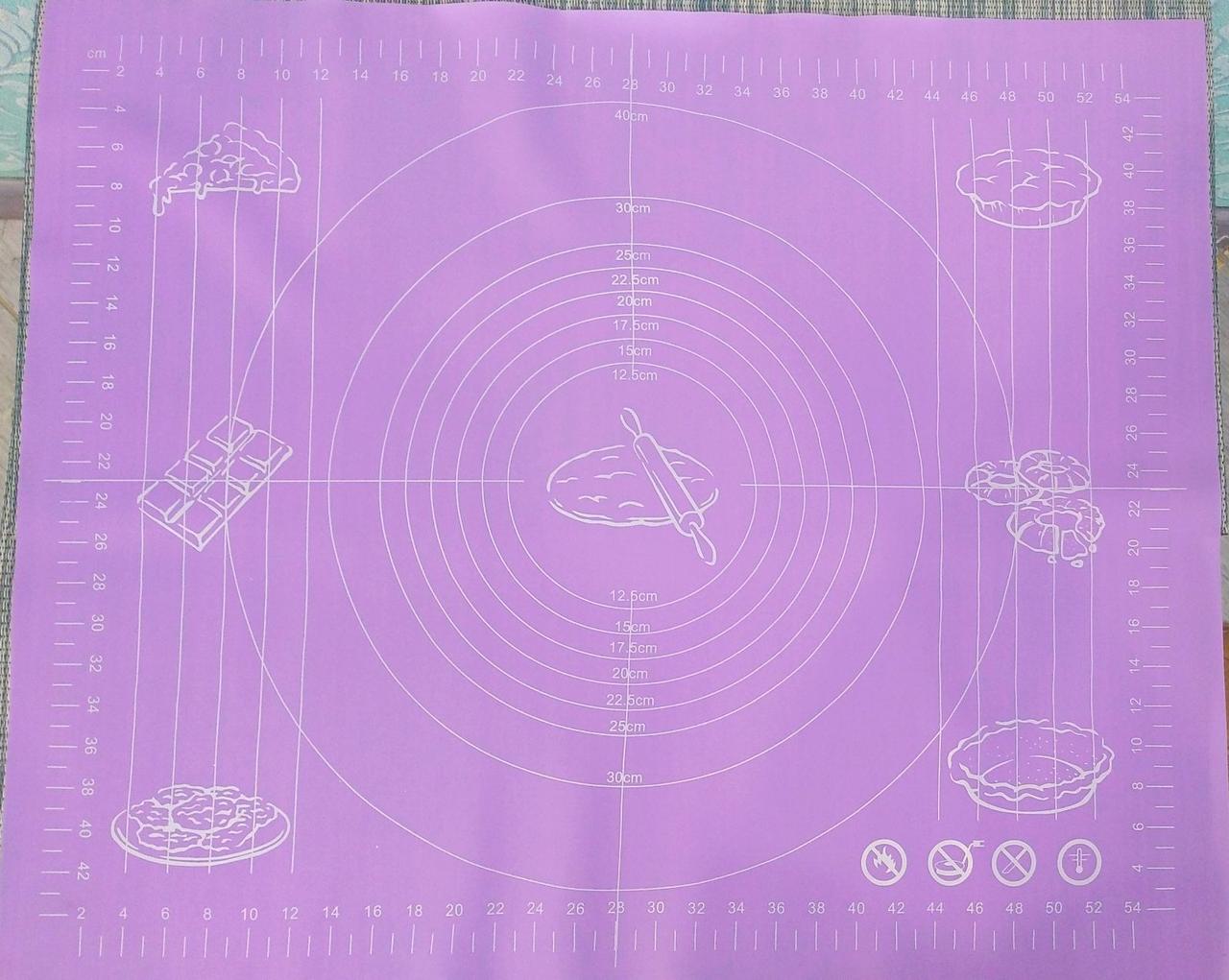 Коврик кухонный силиконовый изготовлен из безопасного пищевого и термостойкого силикона, что обеспечивает его долговечность и надежность в использовании. Силиконовый коврик подставка отлично ложится на рабочую поверхность и не скользит при раскатывании теста. Поверхность не требует посыпания мукой, так как тесто не прилипает к силиконовому коврику. Нанесенная геометрическая разметка по середине и по периметру коврика позволяет работать с тестом без дополнительных измерений. Силиконовую подставку можно использовать как для выпекания, так и для хранения изделий в холодильниках и морозильных камерах. Материал коврика очень пластичен, и позволяет хранить его в свернутом виде, имеет легкий вес. Коврик легко очищать, а также можно мыть в посудомоечной машине. Кухонный силиконовый коврик не впитывает посторонние запахи и не имеет своего. Размеры: 50х60см.
