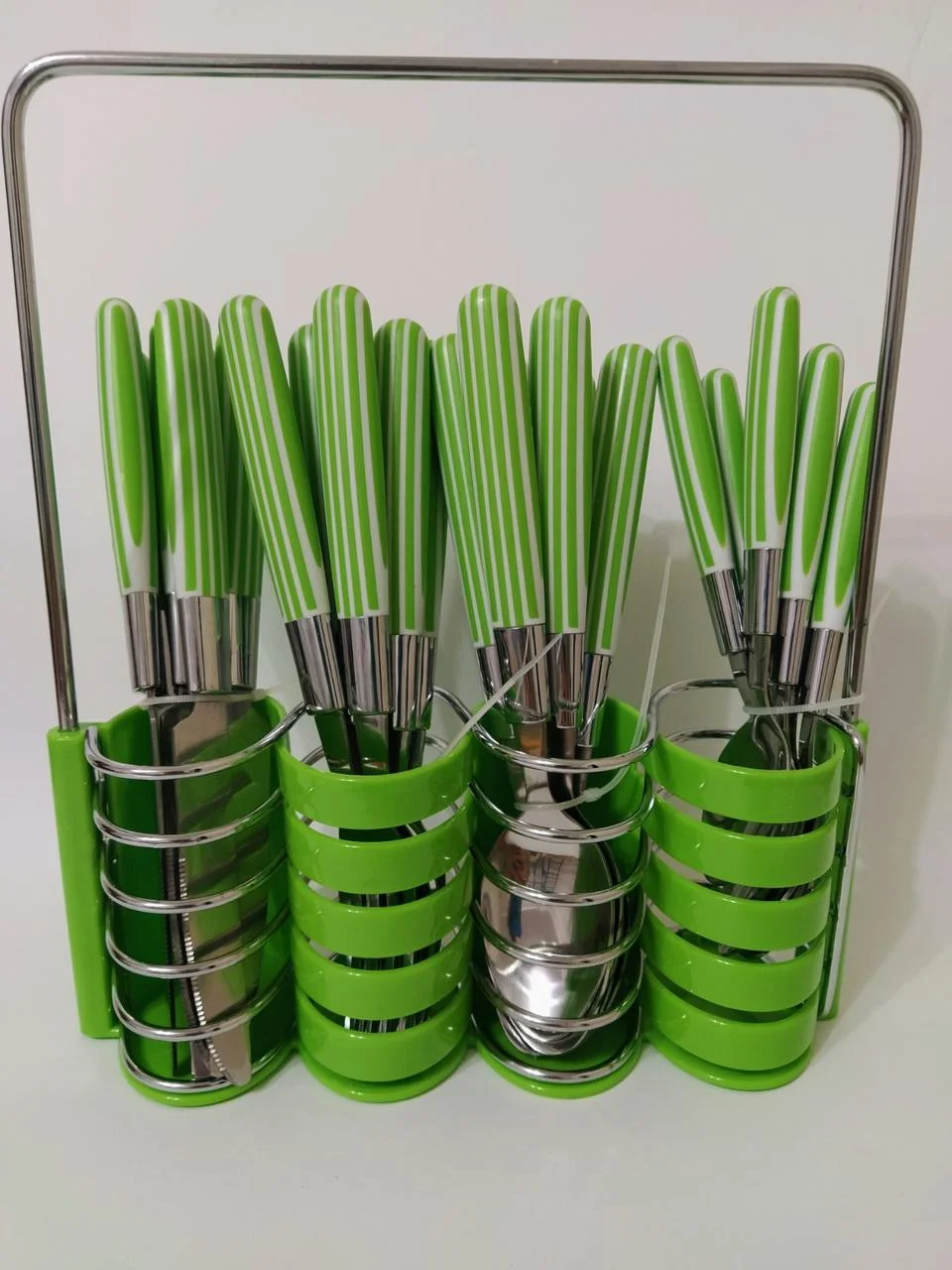 Набор состоит из 24 столовых предметов, для вашего удобства в набор имеет подставку для компактного хранения, благодаря чему этот товар может быть отличным подарком.