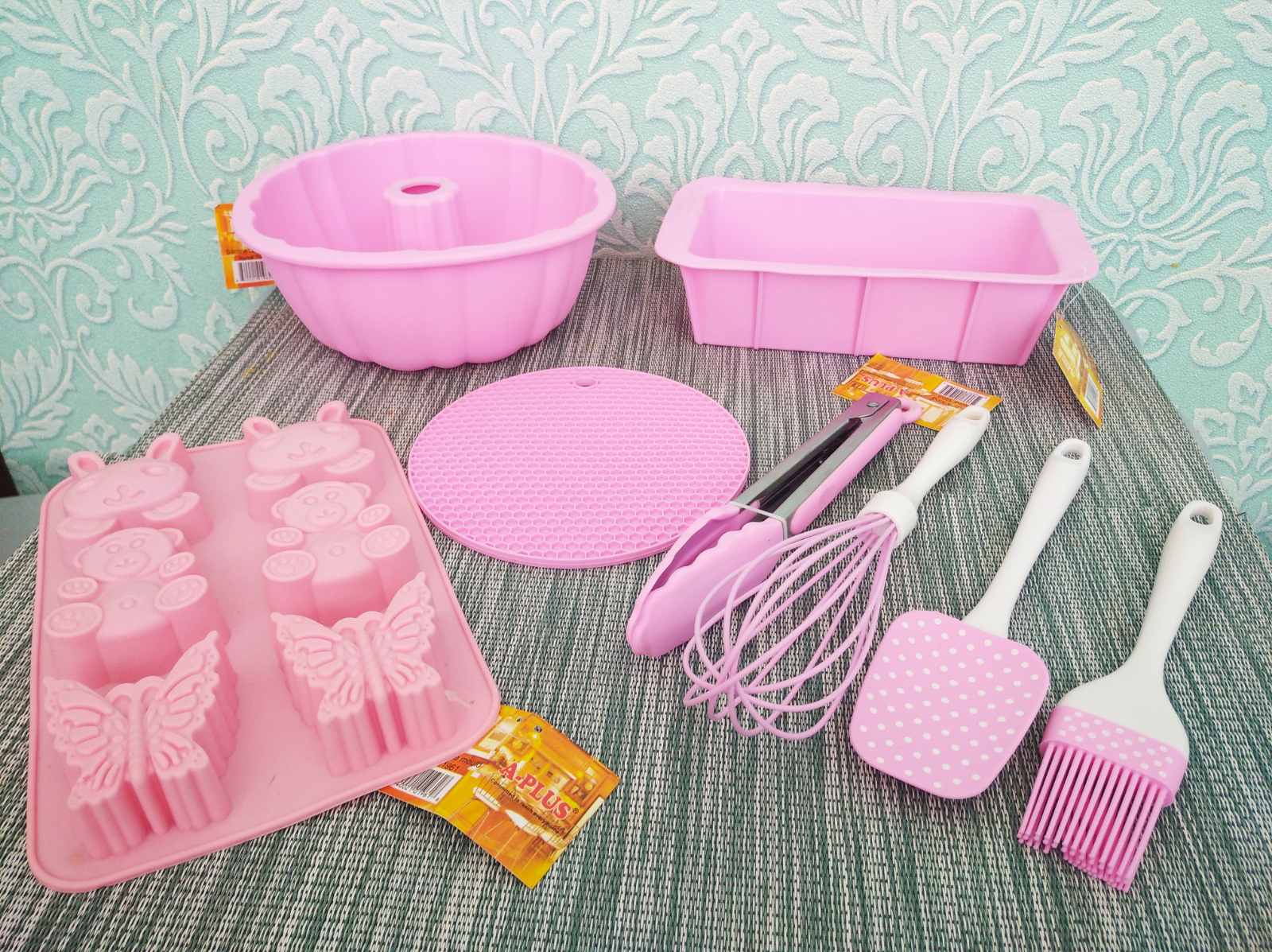 Силиконовый набор кухонных принадлежностей: Силиконовая форма из 6 ячеек, форма для выпечки кекса, хлеба, лопатка, веньчик, щипцы, кисточка, подставка под горячее