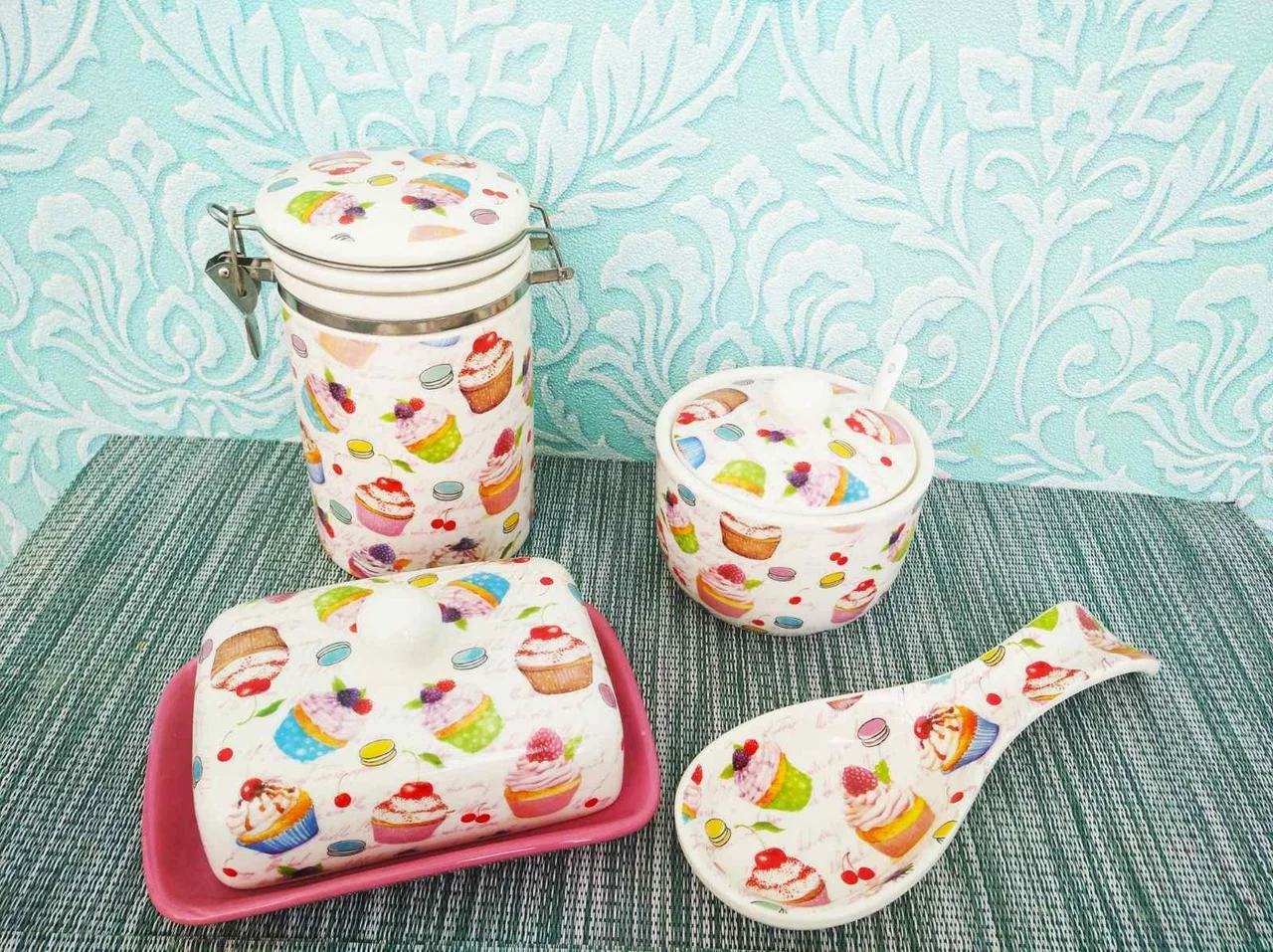 Сахарница с ложкой, Емкость для сыпучих продуктов, Масленка