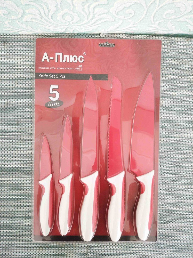 Набор кухонных ножей выполнен из высококачественной экологически чистой нержавеющей стали с антибактериальным керамическим покрытием. Благодаря антискользящим бакелитовым ручкам с резиновыми накладками ножи удобно сидят в руке и не выскальзывают в процессе эксплуатации. Красивый и стильный дизайн. Упаковка блистер.