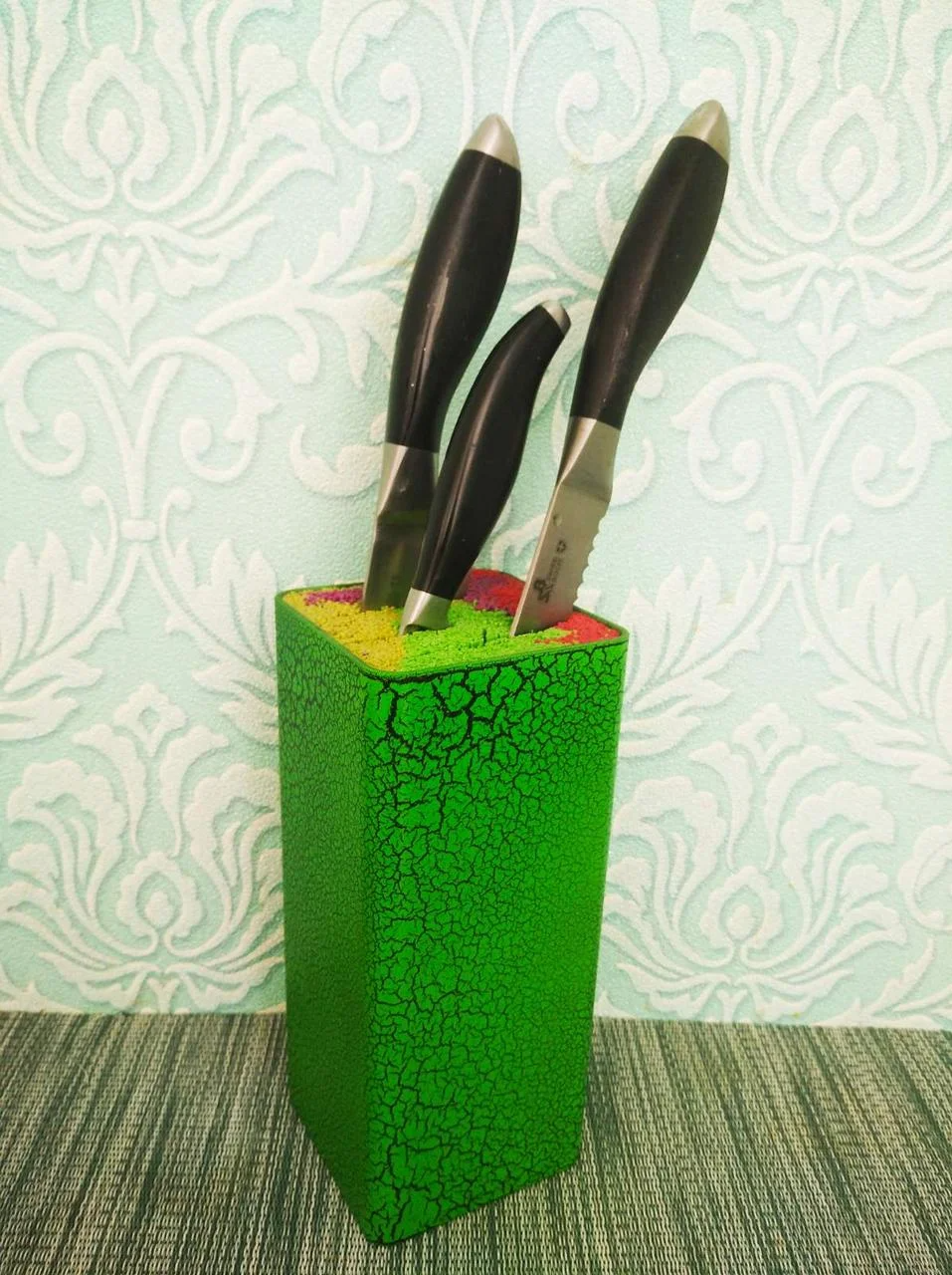 Подставка для ножей подходит для хранения как металлических, так и керамических ножей, разных по форме и размеру. Ножи не тупятся, не царапаются и не подвергаются опасности заржаветь или разбиться!
