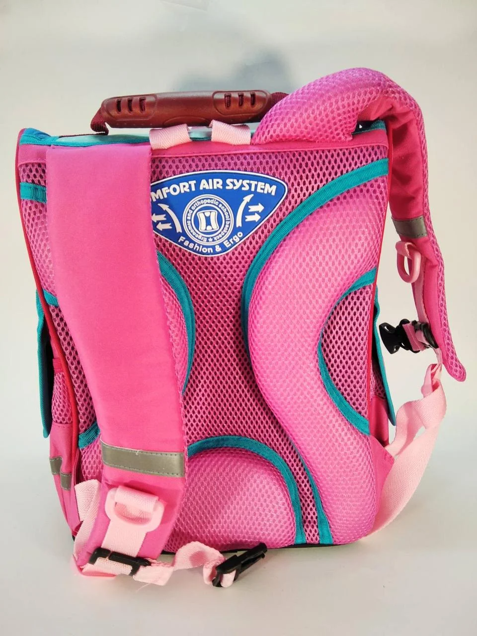 Каркасный рюкзак с ортопедической спинкой выполнен из качественных материалов с водоотталкивающими свойствами.