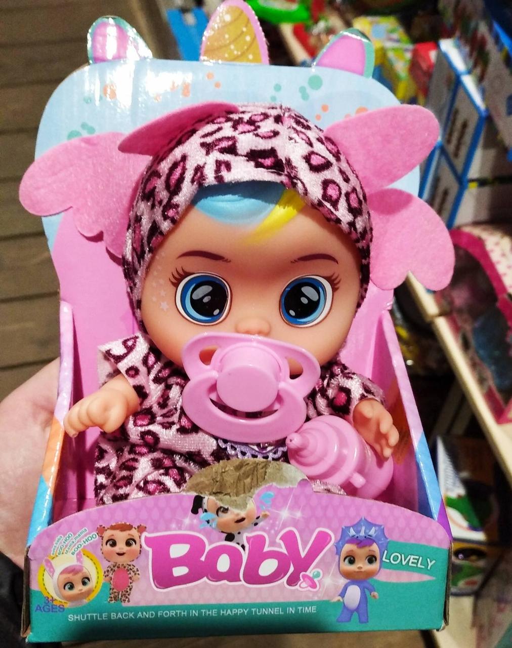 У малышки большие глаза, за счет чего куколку хочется обнимать. Пропорции тела пупса напоминают новорожденного, по-этому малыш будет сравнивать его с собой и инстинктивно проявлять заботу о нем.