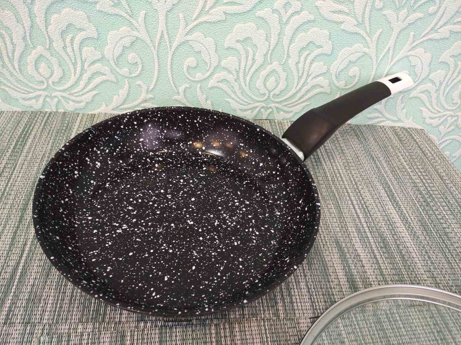 Сковорода имеет гранитное антипригарное покрытие, корпус изготовлен из высококачественного литого алюминия.