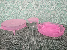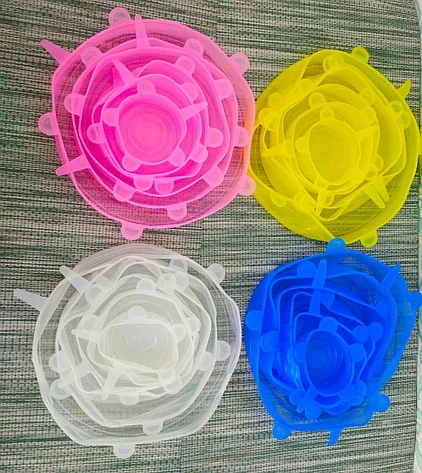 Универсальные силиконовые крышки, которыми можно накрывать тарелки, сковороды, сотейники и кастрюльки, а также судочки и банки. Силиконовые крышки заменят пищевую пленку и обычные крышки кастрюль. Они отлично сохраняют продукты, обеспечивая герметичность. Благодаря выпуклой форме изнутри создается надежное сцепление с емкостью, что позволяет исключить попадание бактерий и запахов на продукты. Изготовлены из безопасного для здоровья пищевого силикона. Всегда ли вы пытаетесь найти крышки для покрытия контейнеров, чашек, кружек или банок, незавершенных напитков или остатков пищи? Не волнуйтесь, эти силиконовые крышки Super Stretch помогут решить эти проблемы. С плотной функцией уплотнения и 6 различными размерами, это будет хороший помощник на кухне. Основные характеристики: Многоразовые крышки для хранения, изготовленные из высококачественного силикона для пищевых продуктов. Обертка может покрывать почти любое блюдо, миску или тарелку с герметичным уплотнением. Неважно, круглые ли они, квадратные, продолговатые или прямоугольные, эти крышки растягиваются до любой формы и по-прежнему обеспечивают воздухонепроницаемую печать. Очень прочные. Подходит для печи, морозильной камеры и микроволновой печи, они также идеально подходят для замены потерянных крышек или тех, которые вызывают раздражение. Диапазон выдерживаемых температур: -30 - 230 ° C. Силиконовые крышки Super Stretch Silicone Lids имеют множество достоинств: Легко одеваются и снимаются; Отлично принимают любую форму; Плотно прилегает ко всем поверхностям; Хорошо удерживают жидкость внутри емкости; Легко моются как ручной мойкой, так и в посудомойке; Подходят для разогрева продуктов в микроволновой печи; Обеспечивают удобное хранение продуктов в холодильнике; Предотвращают от смешивание различных запахов продуктов в холодильнике; Подходят для заморозки продуктов в емкостях; Пищевой силикон не содержит вредных веществ.