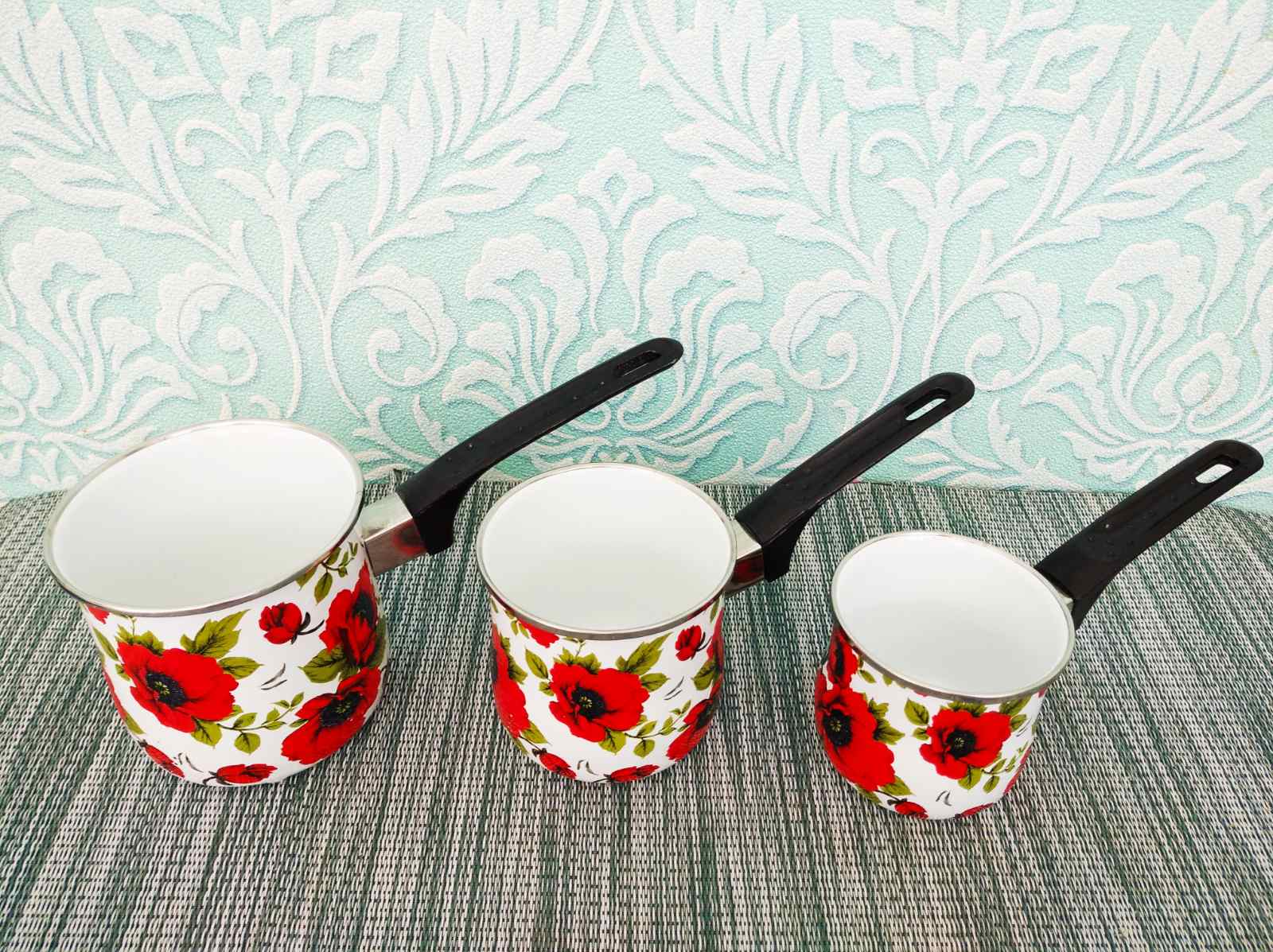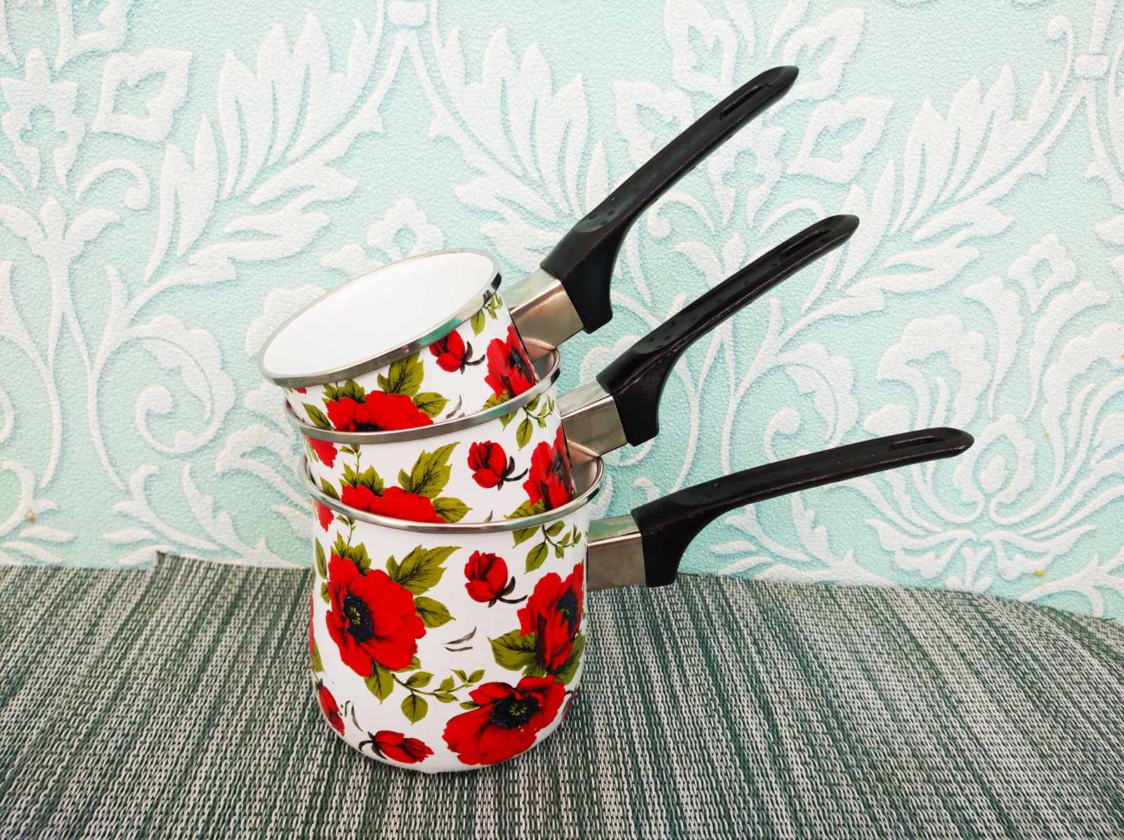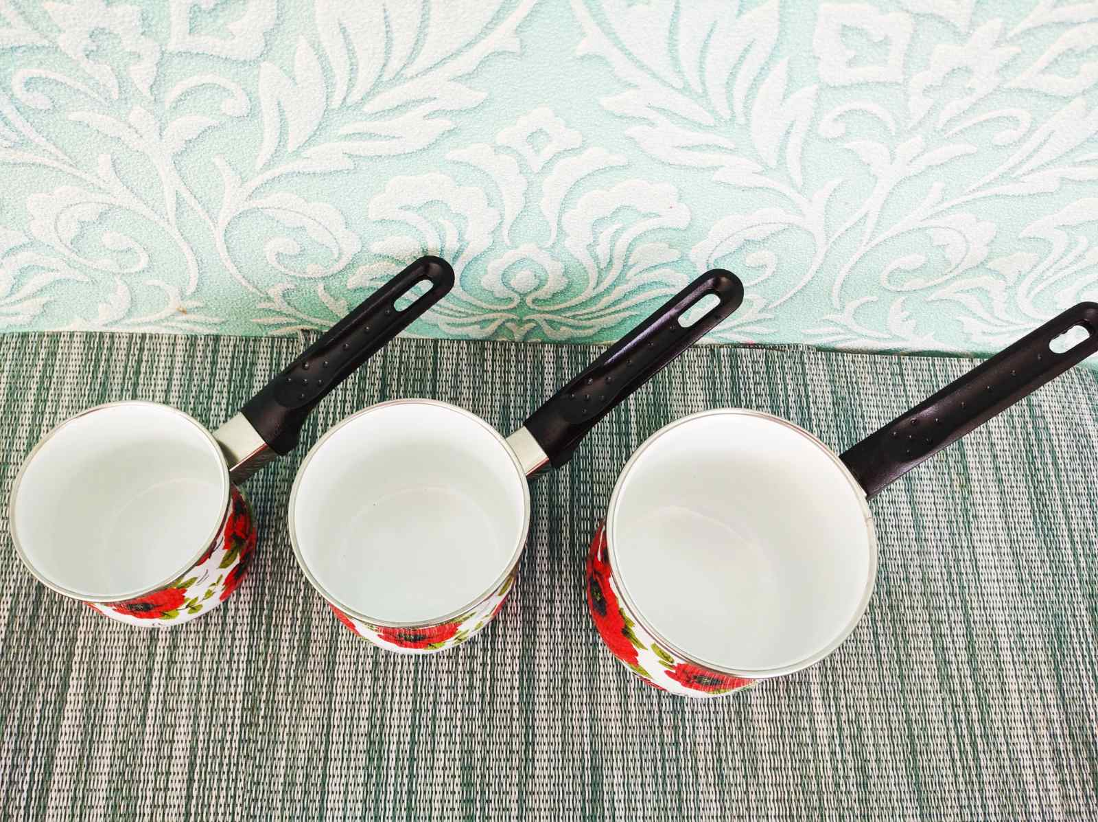 Такой набор ковшей изготовлен из металла высокого качества, покрытого эмалью. Такие кофеварки прочные и долговечные. Легко очищается даже в прохладной воде. Имеет современный дизайн и яркий цветочный принт. У такого хозяйственного ковша удобная ручка. В нем можно не только варить кофе, но и подогревать воду, молоко и другое. Набор станет отличным многофункциональным подарком для каждой хозяйки и на любой кухне кафе или ресторана.