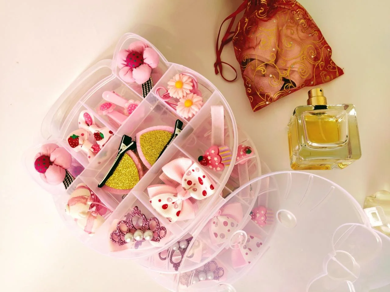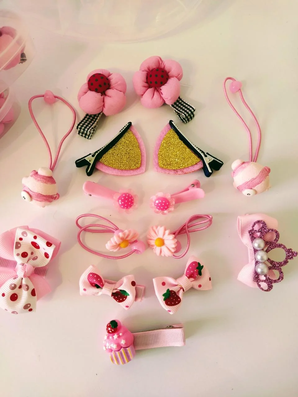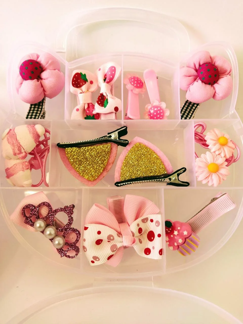 Детский набор для волос включает в себя много аксессуаров для создания прически.